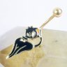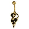Пирсинг в пупок из хирургической стали с титановым покрытием позолота, украшен черной кошечкой! Штанга 1,6х10 мм